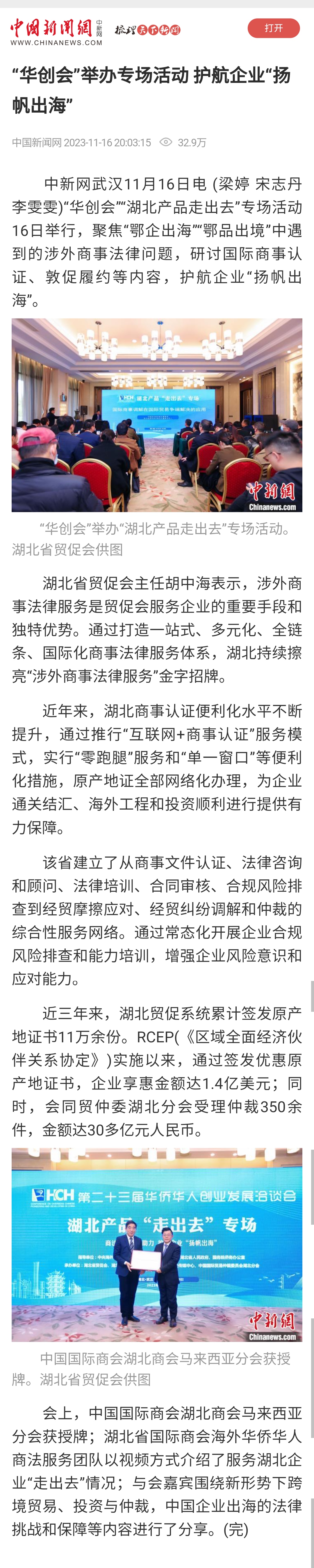 中国新闻网:“华创会”举办专场活动 护航企业“扬帆出海”