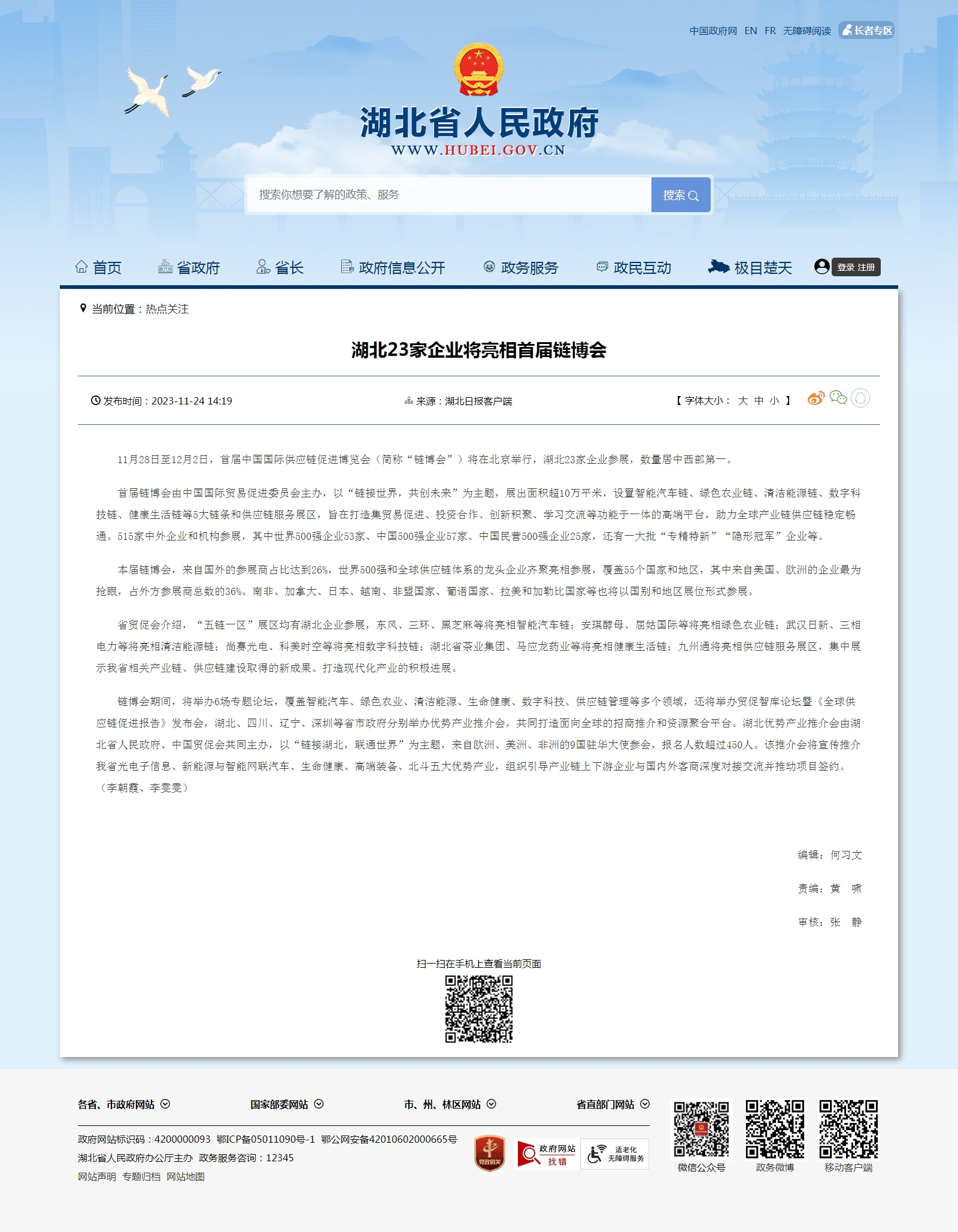 湖北省人民政府门户网站:湖北23家企业将亮相首届链博会