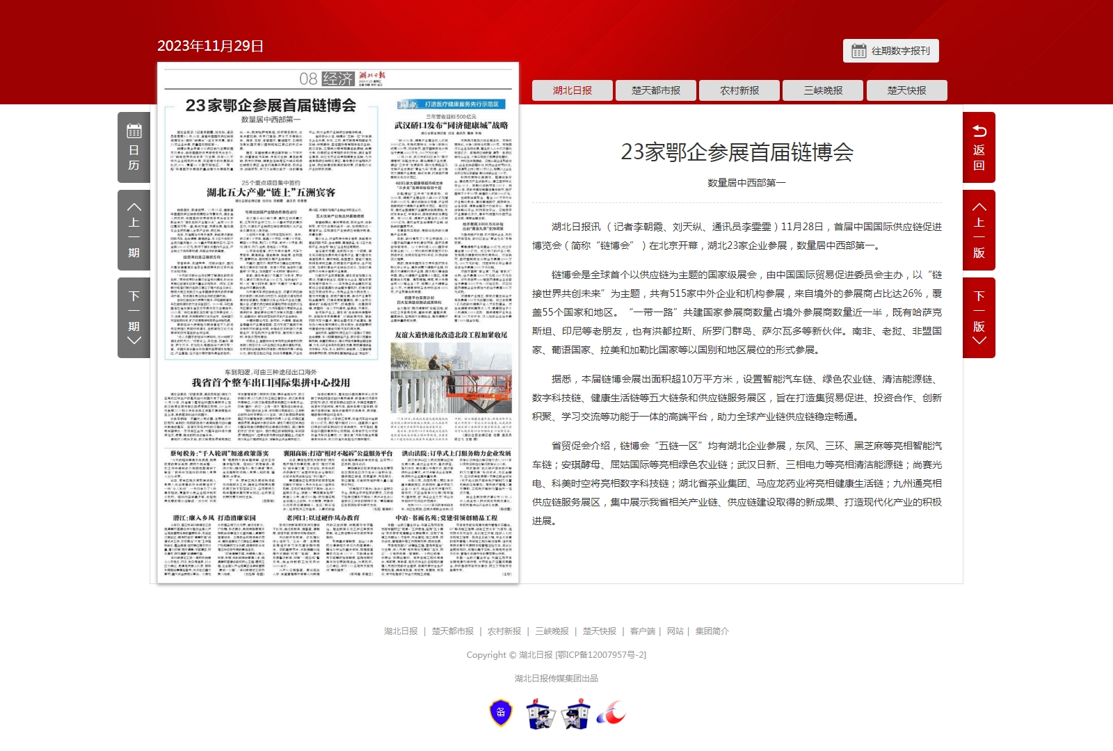 湖北日报:23家鄂企参展首届链博会 数量居中西部第一