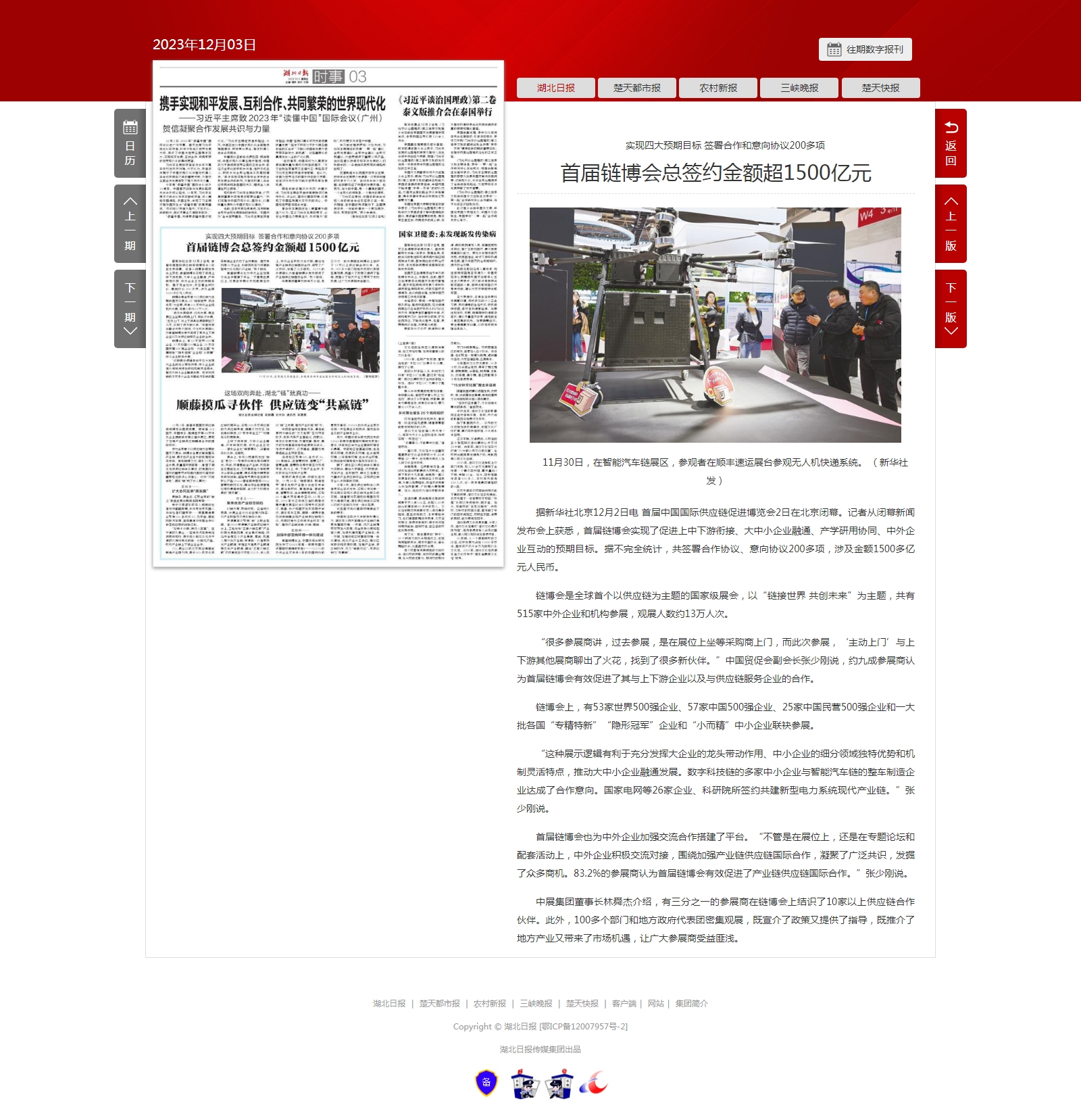 湖北日报:实现四大预期目标 签署合作和意向协议200多项 首届链博会总签约金额超1500亿元
