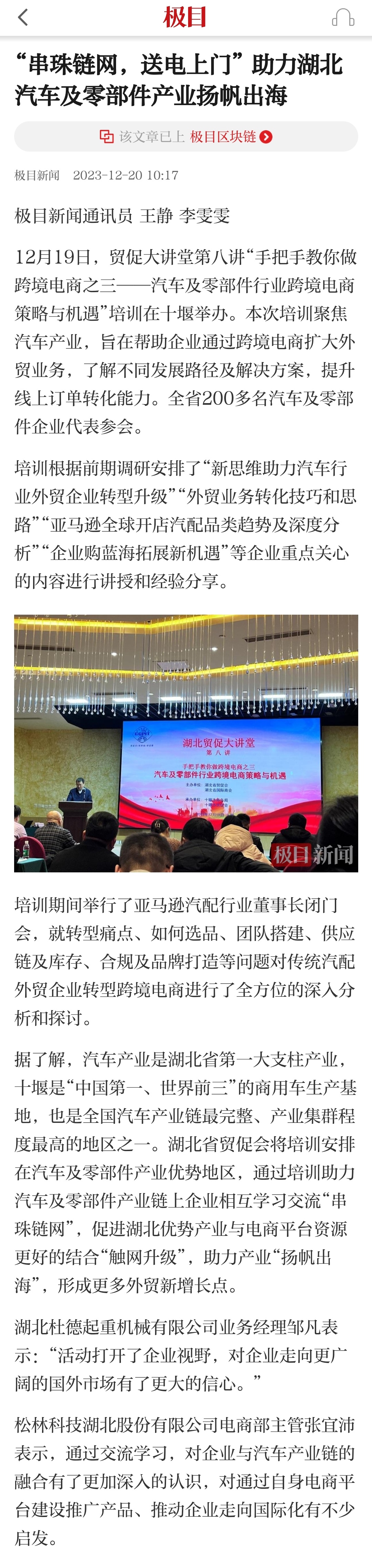 极目新闻:“串珠链网,送电上门” 助力湖北汽车及零部件产业扬帆出海