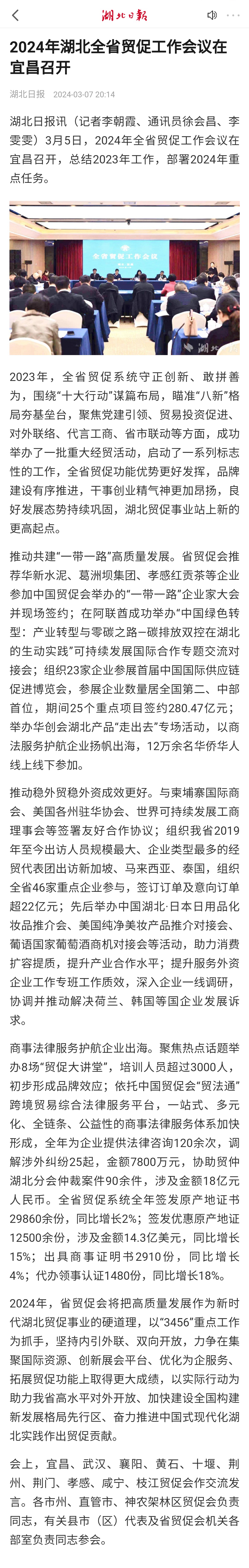 湖北日报:2024年湖北全省贸促工作会议在宜昌召开