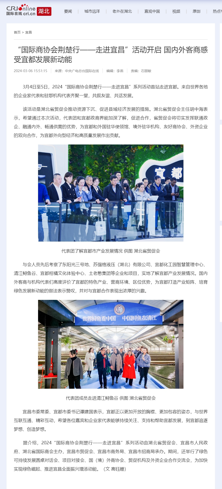中央广电总台国际在线:“国际商协会荆楚行——走进宜昌”活动开启 国内外客商感受宜都发展新动能
