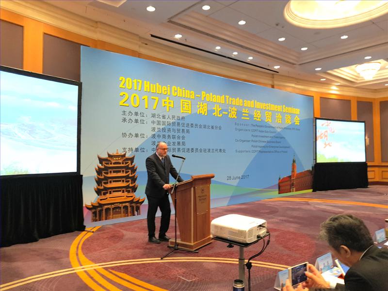 2017年6月28日,由省政府主办、省贸促会、波兰投资与贸易局承办、波中商务联合会、波兰企业发展局协办的2017中国湖北-波兰经贸洽谈会在华沙成功举办,以能源、农业食品、装备制造、电子信息、轻工建材、汽车、化工等行业为主的60家湖北企业在波亮相。中国驻波兰大使馆经参处、波兰投资与贸易局、波中商务联合会、波兰企业发展局、中国贸促会驻波兰代表处、波兰客商以及我省代表团共计250多人出席洽谈会,省贸促会副会长梁君君主持会议。