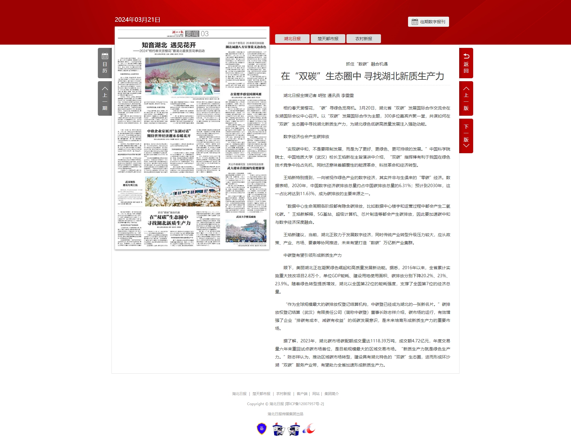 湖北日报:在“双碳”生态圈中 寻找湖北新质生产力