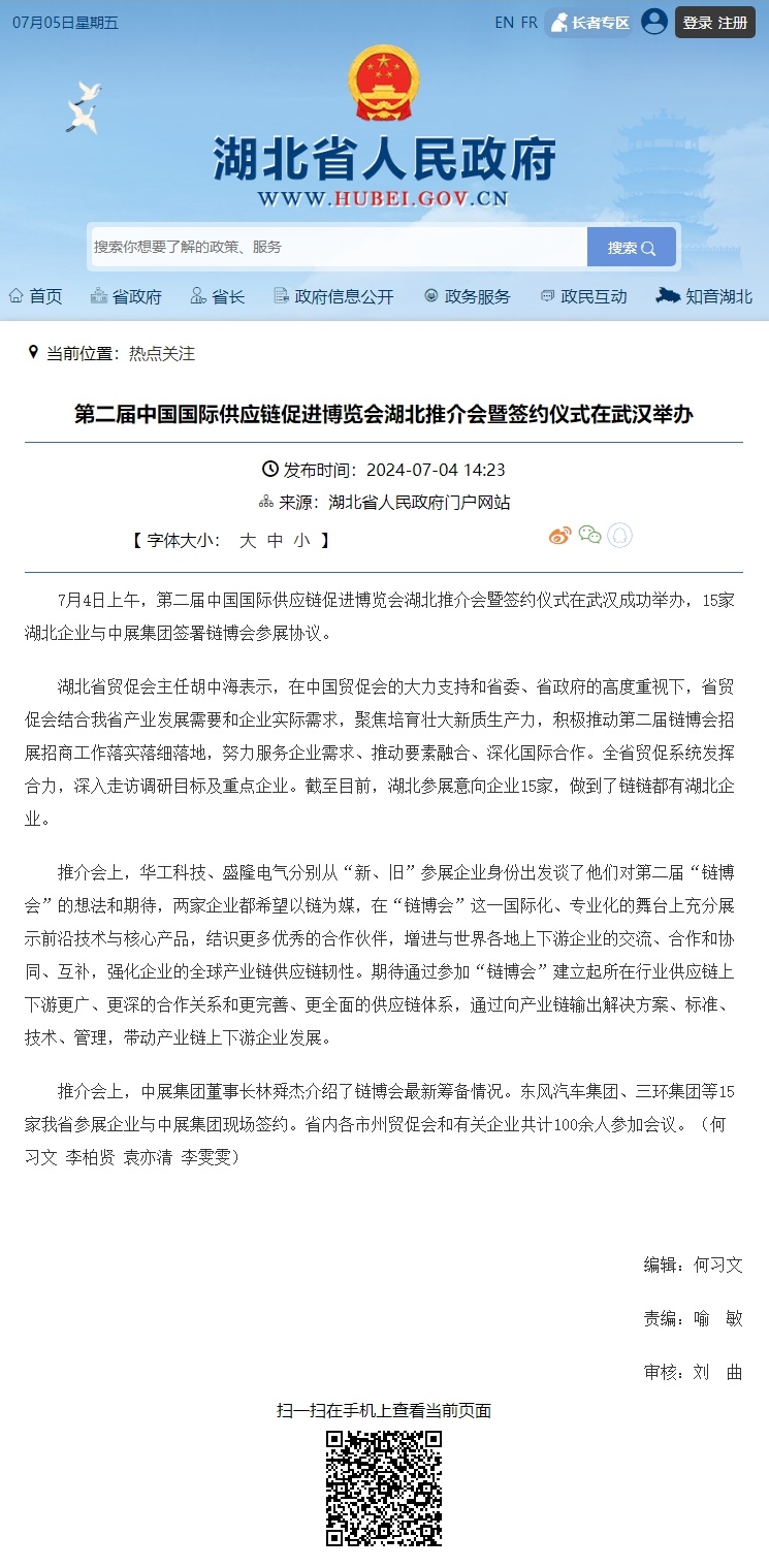 湖北省人民政府门户网站:第二届中国国际供应链促进博览会湖北推介会暨签约仪式在武汉举办