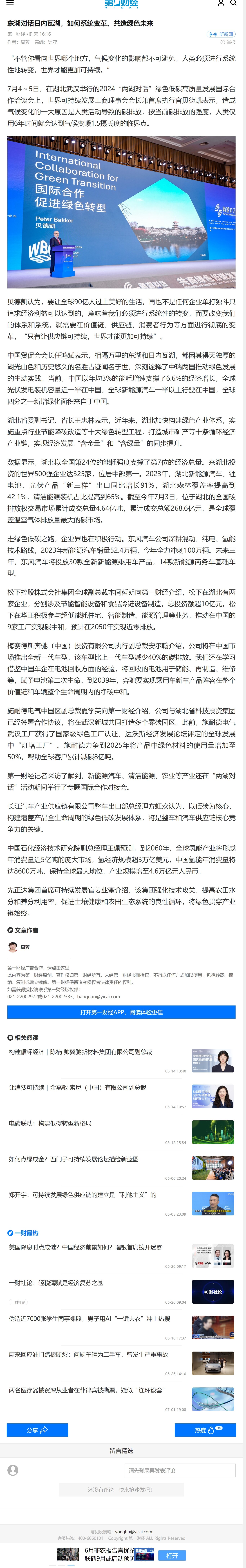 第一财经:东湖对话日内瓦湖,如何系统变革、共造绿色未来