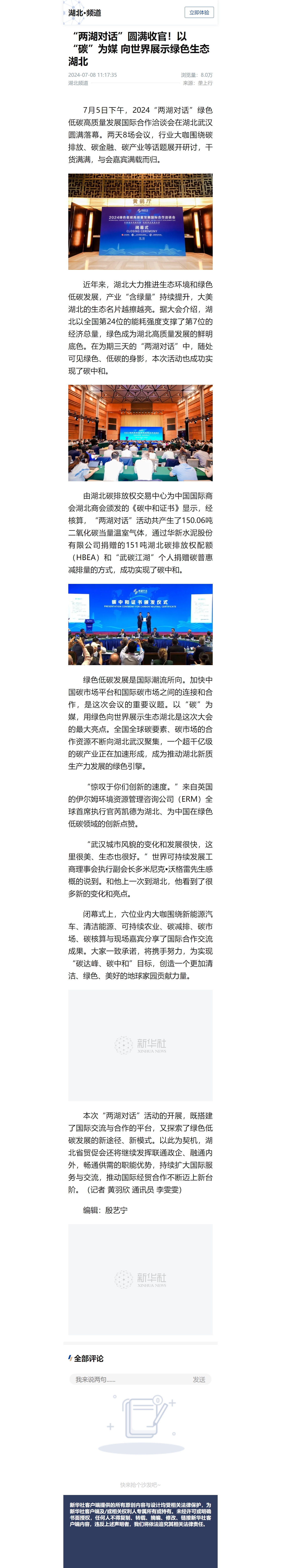 新华社:两湖对话”圆满收官!以“碳”为媒 向世界展示绿色生态湖北