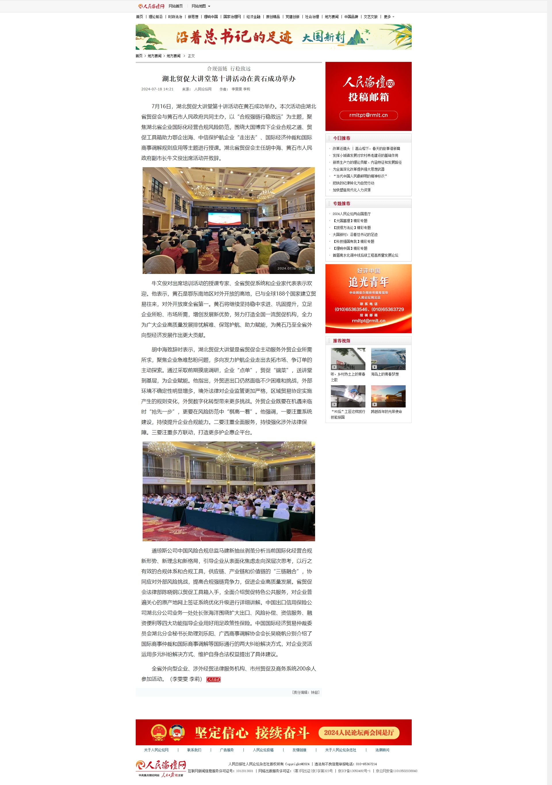 人民论坛网:湖北贸促大讲堂第十讲活动在黄石成功举办