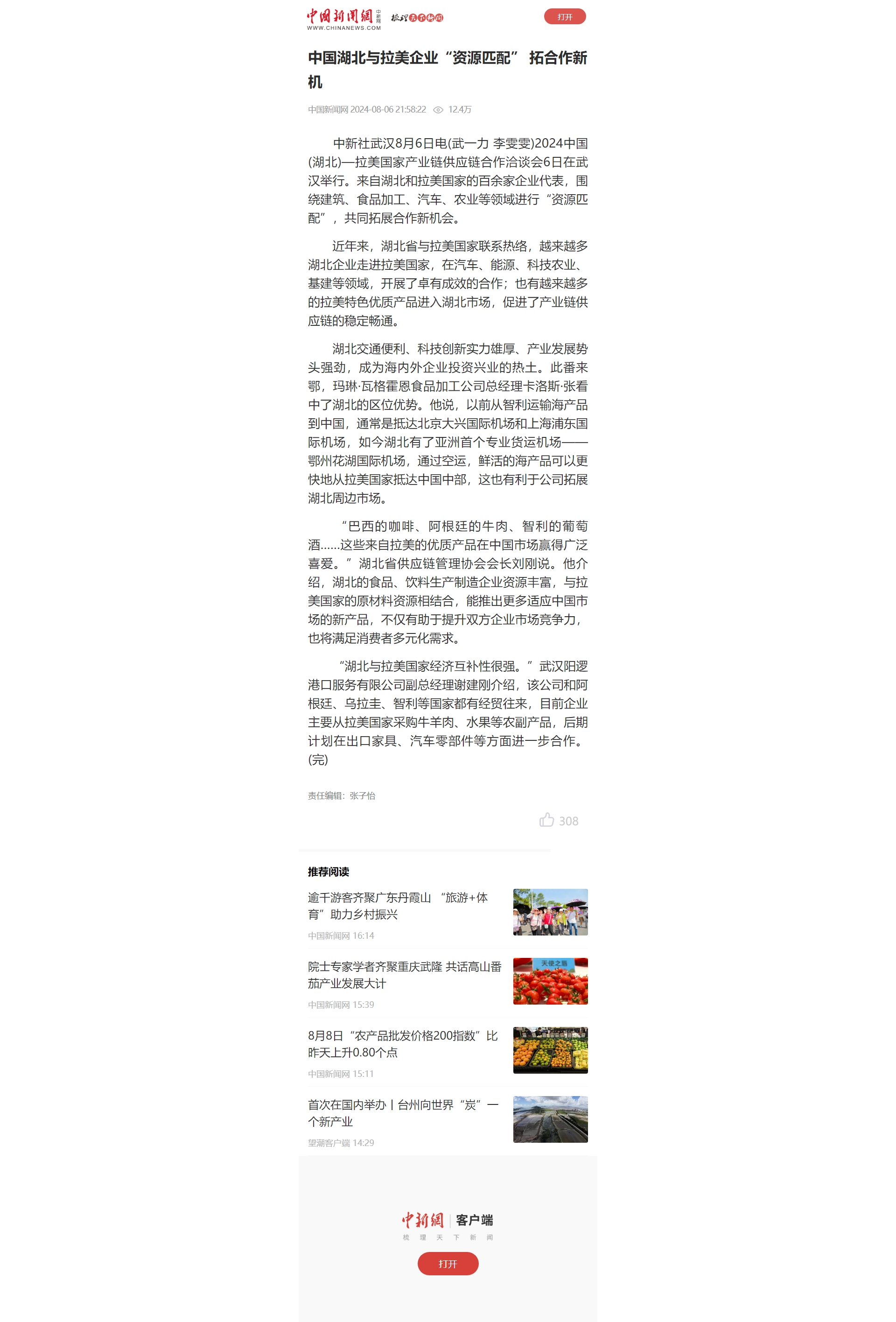 中国新闻社:中国湖北与拉美企业“资源匹配” 拓合作新机