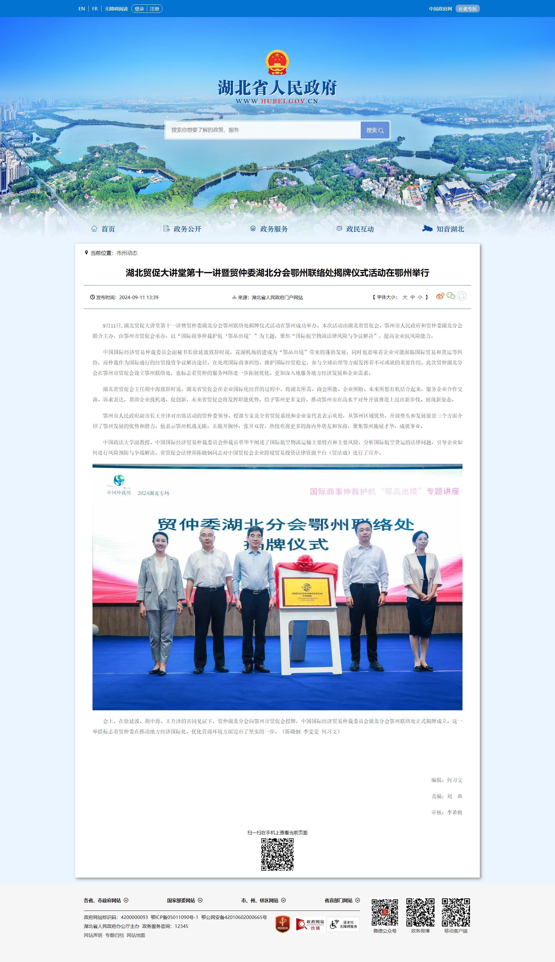 省政府门户网:湖北贸促大讲堂第十一讲暨贸仲委湖北分会鄂州联络处揭牌仪式活动在鄂州举行