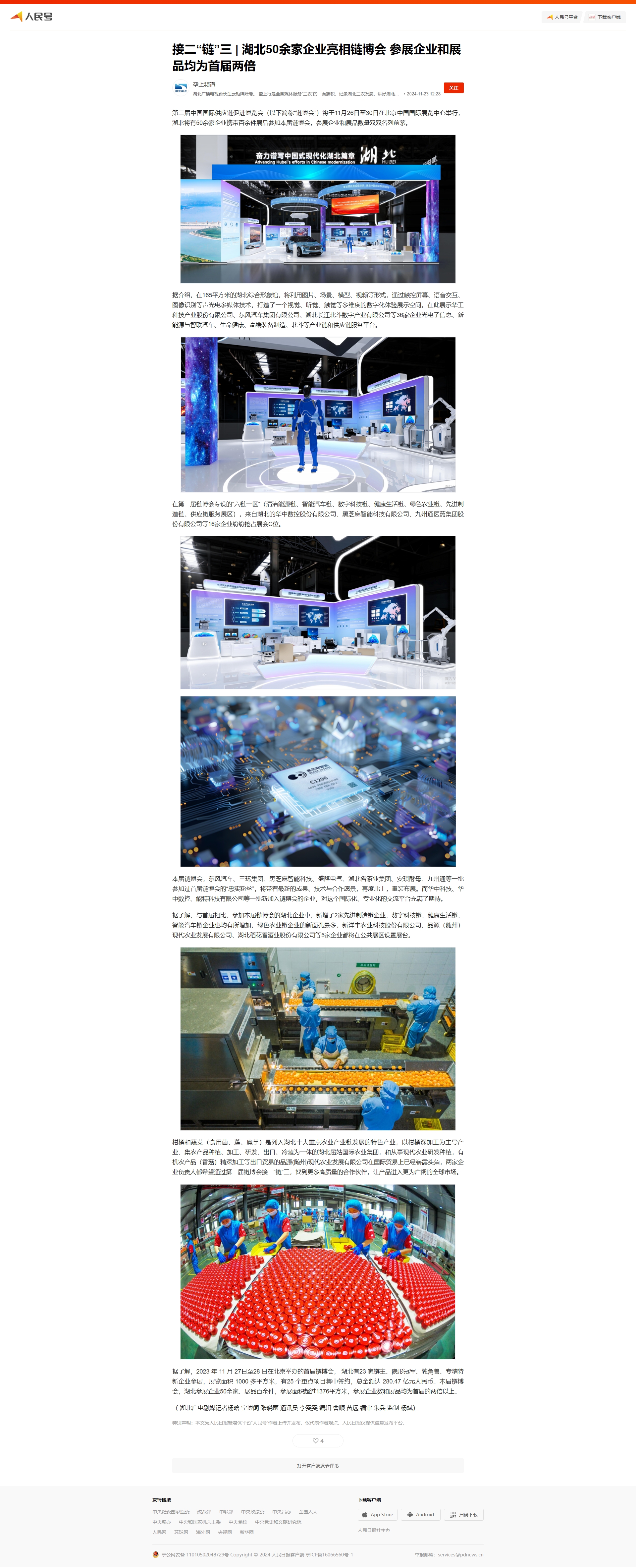 人民号:接二“链”三 _ 湖北50余家企业亮相链博会 参展企业和展品均为首届两倍