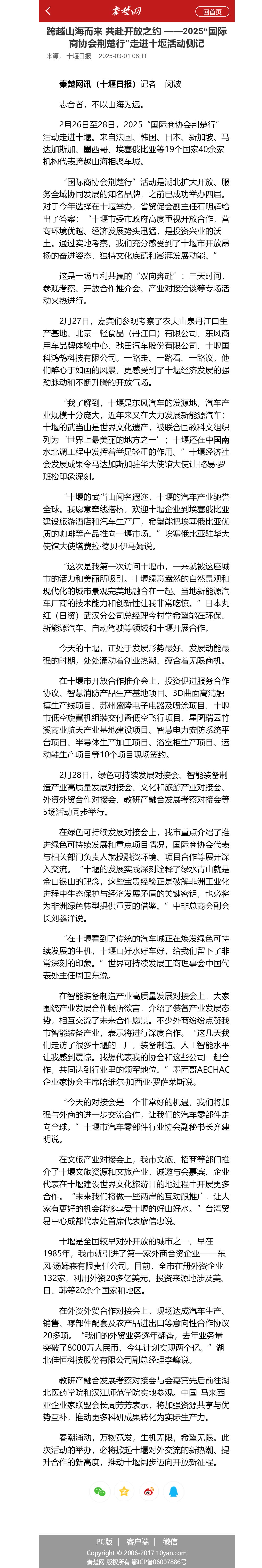 跨越山海而来 共赴开放之约 ——2025“国际商协会荆楚行”走进十堰活动侧记