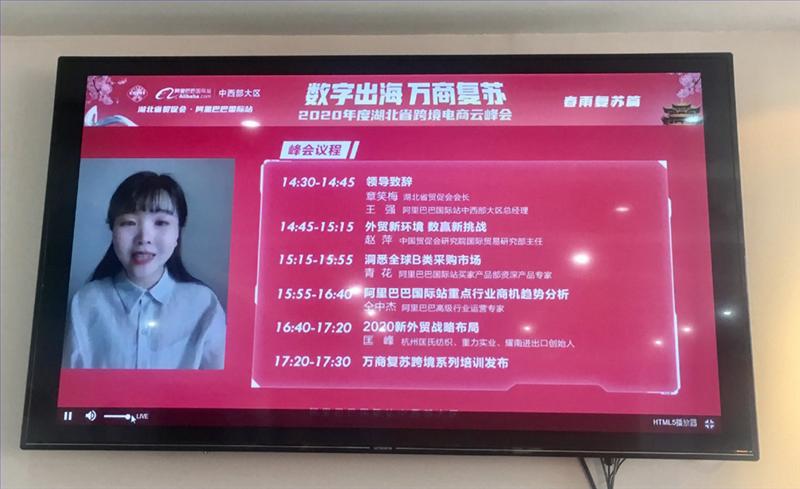 本次会议作为“数字出海 万商复苏”2020年湖北省跨境电商企业云峰会的首场活动,旨在帮助商家了解跨境外贸新形势、线上拓展新方式,增强外贸信心。将来,我会与阿里巴巴国际站将继续围绕跨境电商主题,根据不同行业、不同类型企业的需求推出多期后续活动,乘互联网之势帮助湖北企业开拓国际市场,平稳渡过难关。