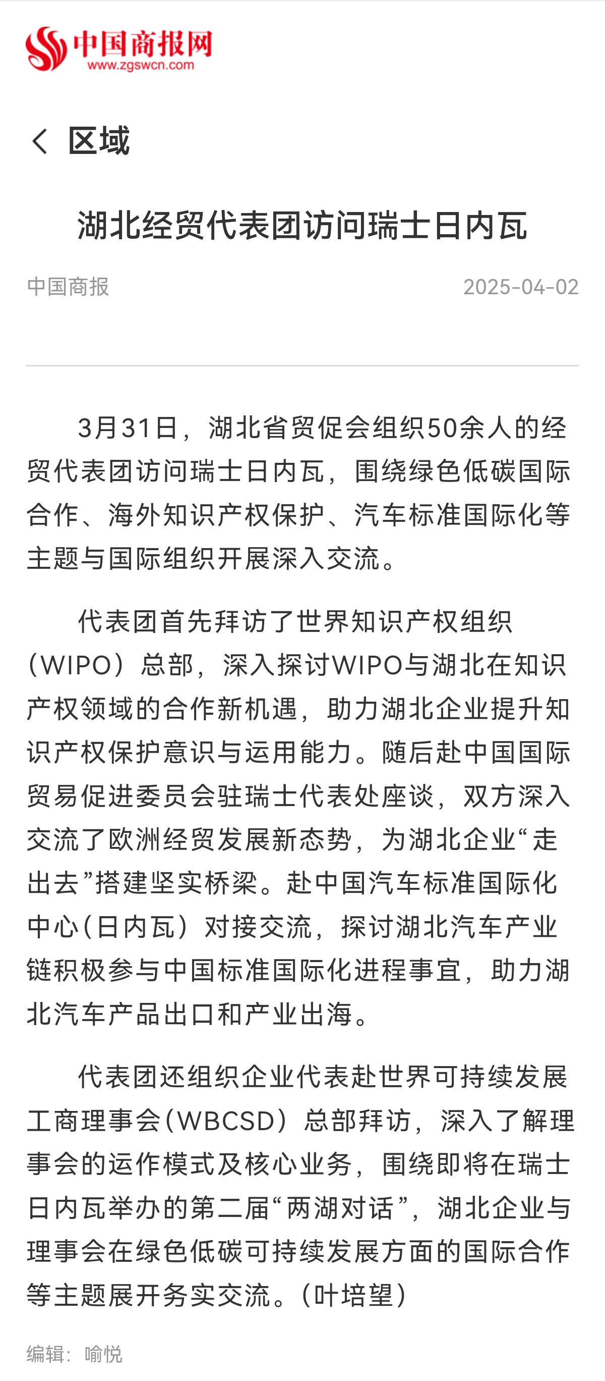 中国商报网:湖北经贸代表团访问瑞士日内瓦