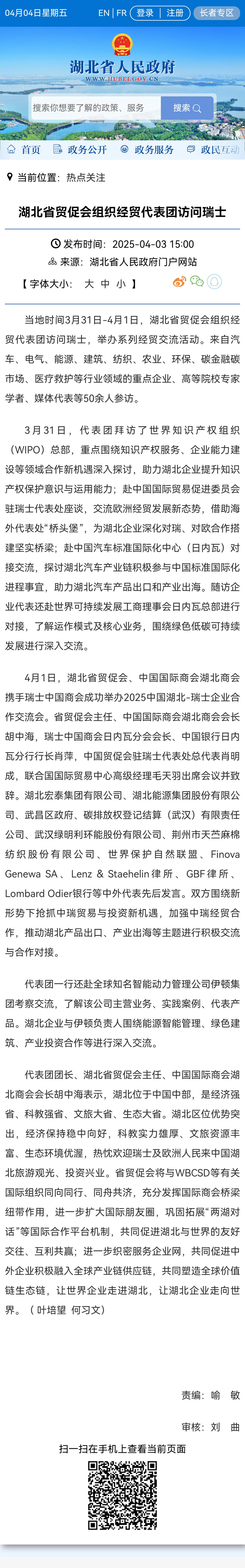 湖北省人民政府网:湖北省贸促会组织经贸代表团访问瑞士