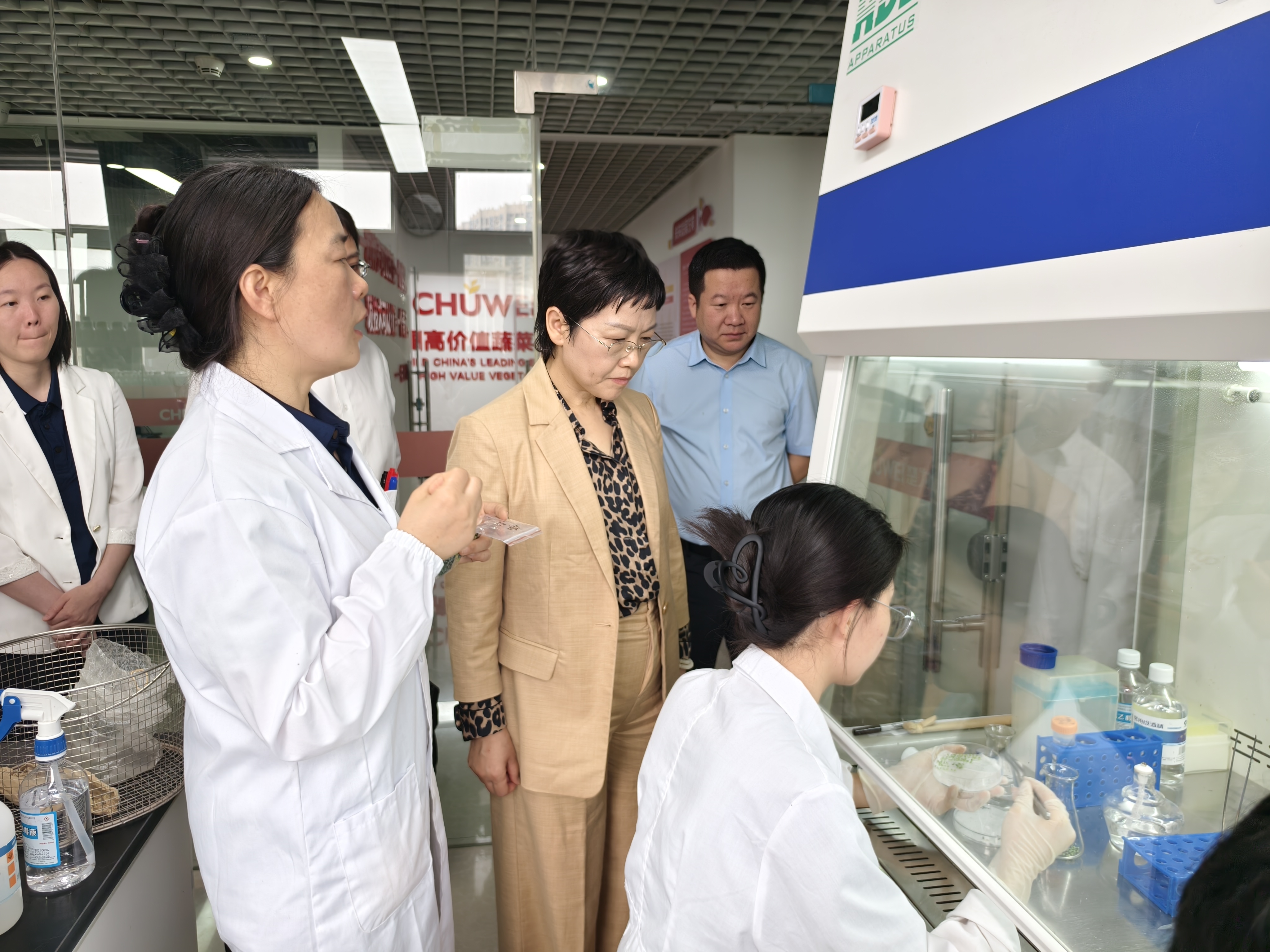 闫梦筠副主任一行参观了楚为现代种业研究院科研实验室及企业文化建设成果展示区,并与公司董事长郑伟及管理团队进行座谈。郑伟表示,去年10月通过贸促会搭建的“走进美洲”这一国际化平台,首次与秘鲁农业部建立了直接联系,不仅拓宽了全球视野,更精准对接了海外市场需求。公司当前正针对重点市场进行全球布局,期待依托贸促会全球网络资源,加快构建本土化营销体系,深度融入全球农业科技合作。