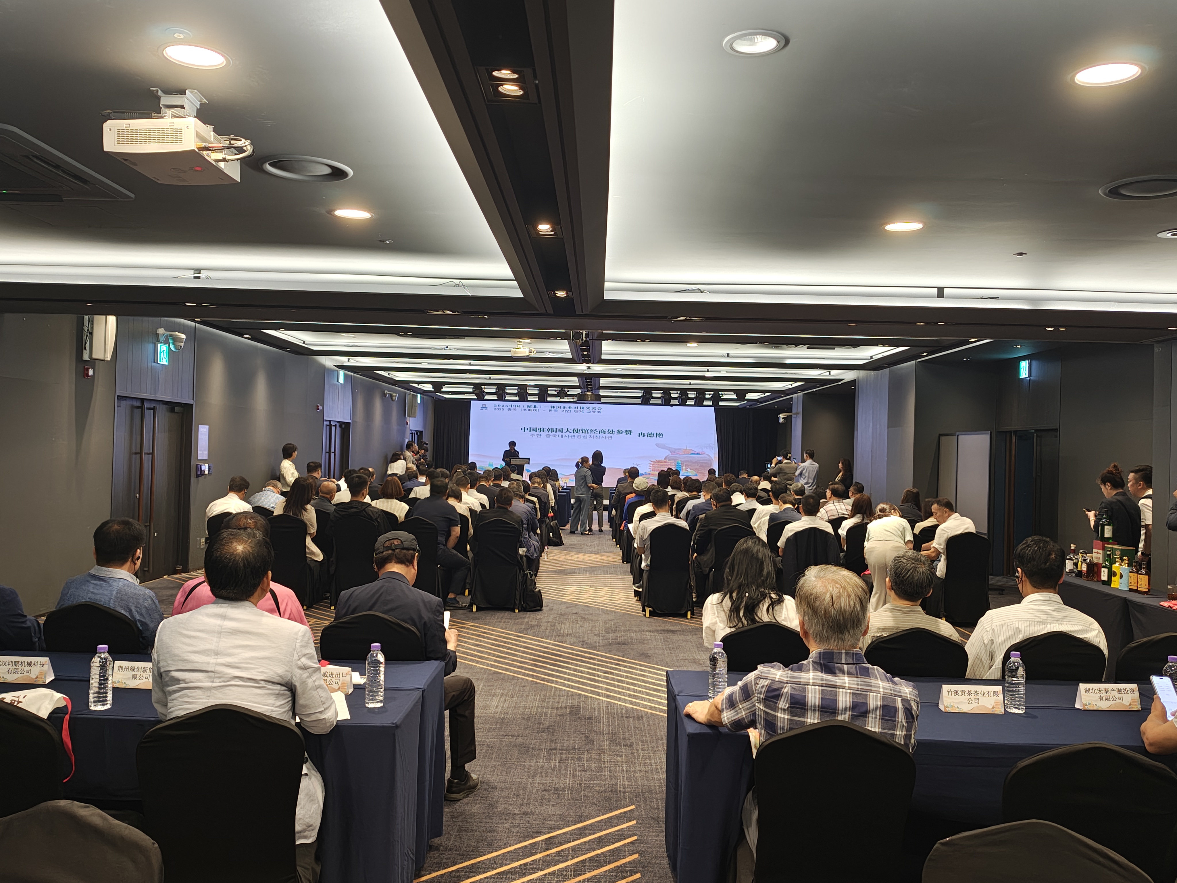 6月23日上午,中国(湖北)- 韩国企业对接交流会在首尔成功举办,湖北省人民政府副秘书长、参事室主任何丽君,中国驻韩国大使馆经商处参赞冉德艳出席活动并致辞。活动由湖北省贸促会承办,近60位韩国知名公司、中小企业代表以及近40位从湖北省前来寻求合作的企业代表,汇聚一堂,共商合作。