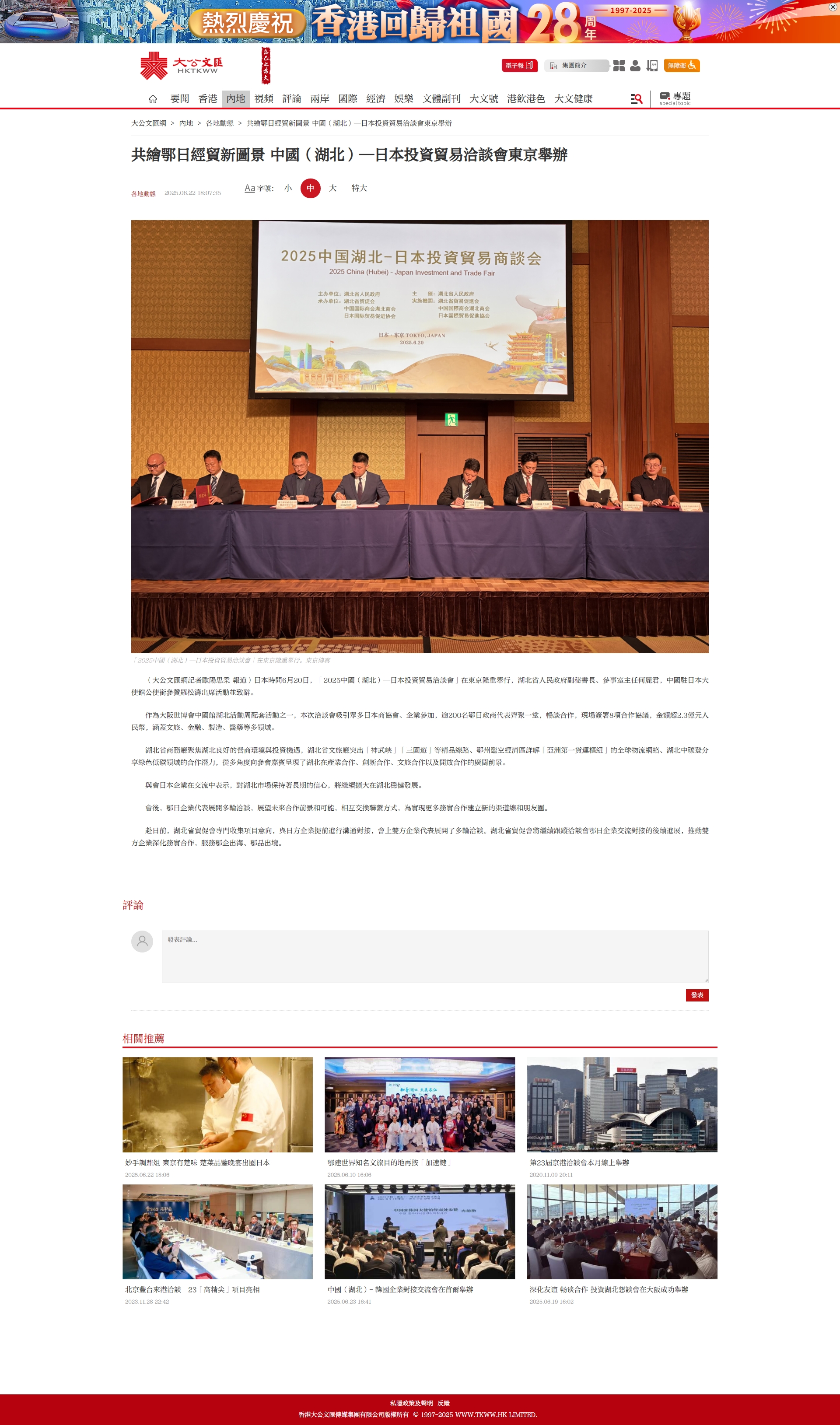 大公文匯網:共繪鄂日經貿新圖景 中國(湖北)—日本投資貿易洽談會東京舉辦