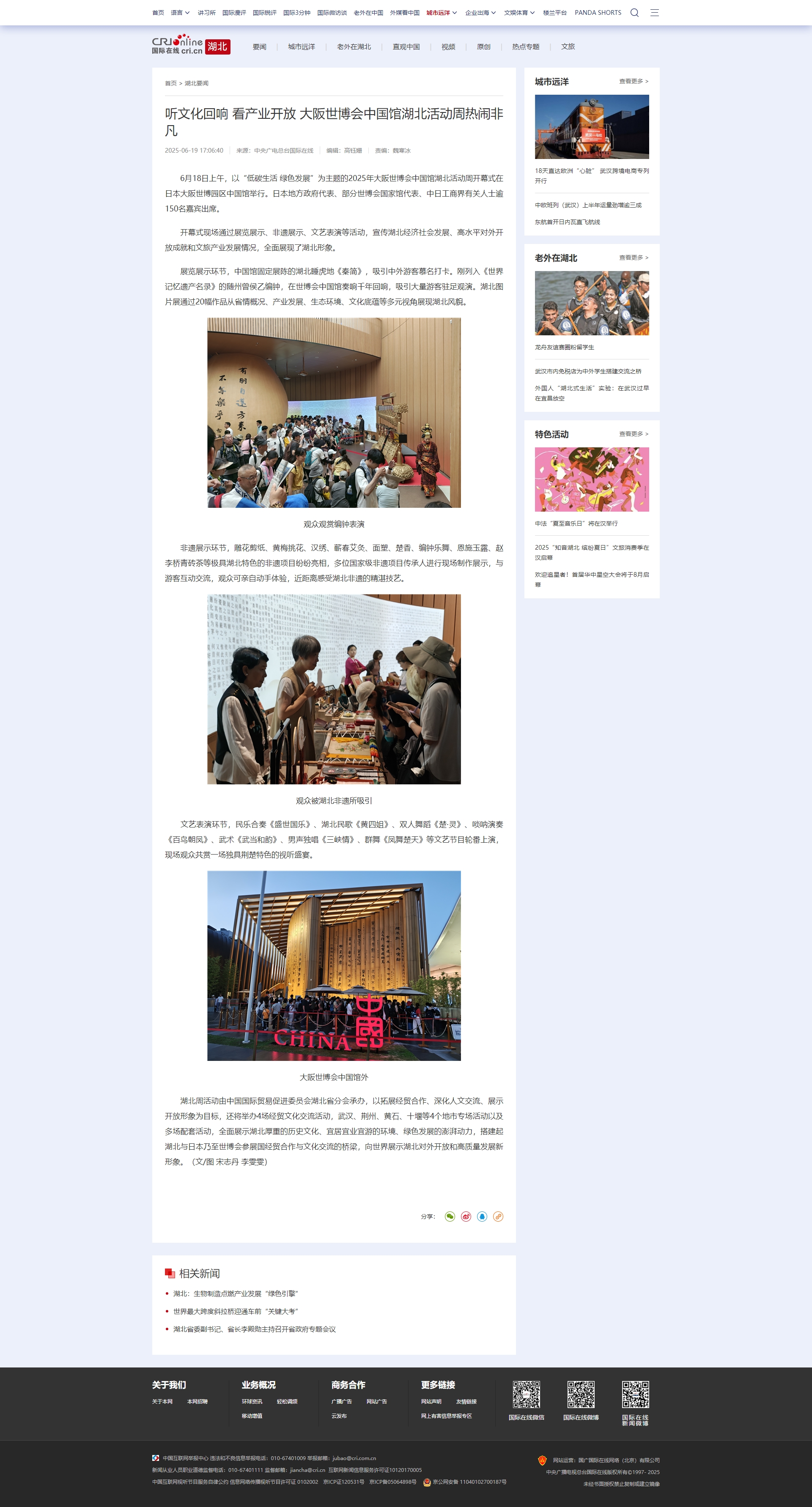 国际在线:听文化回响 看产业开放 大阪世博会中国馆湖北活动周热闹非凡