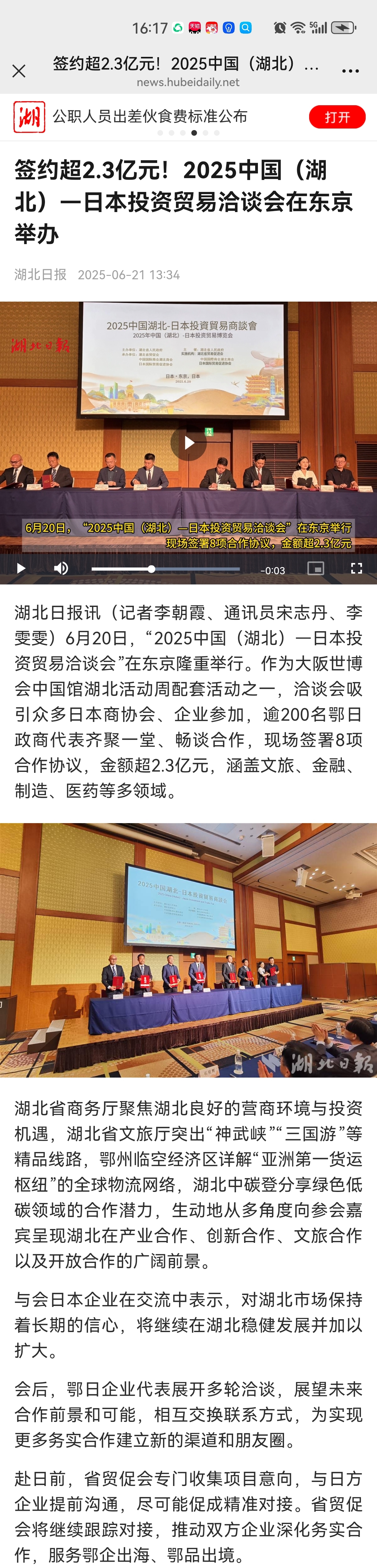湖北日报:签约超2.3亿元!2025中国(湖北)—日本投资贸易洽谈会在东京举办