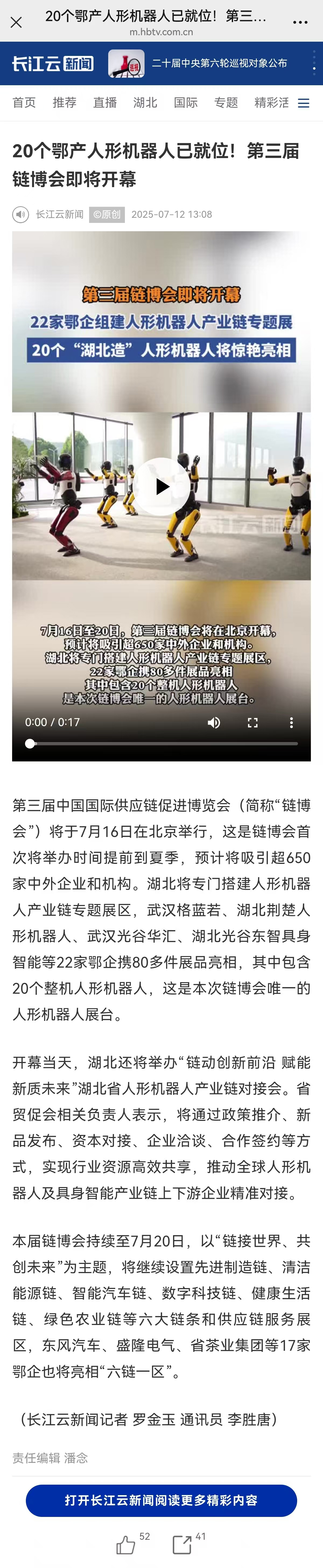 长江云:20个鄂产人形机器人已就位!第三届链博会即将开幕