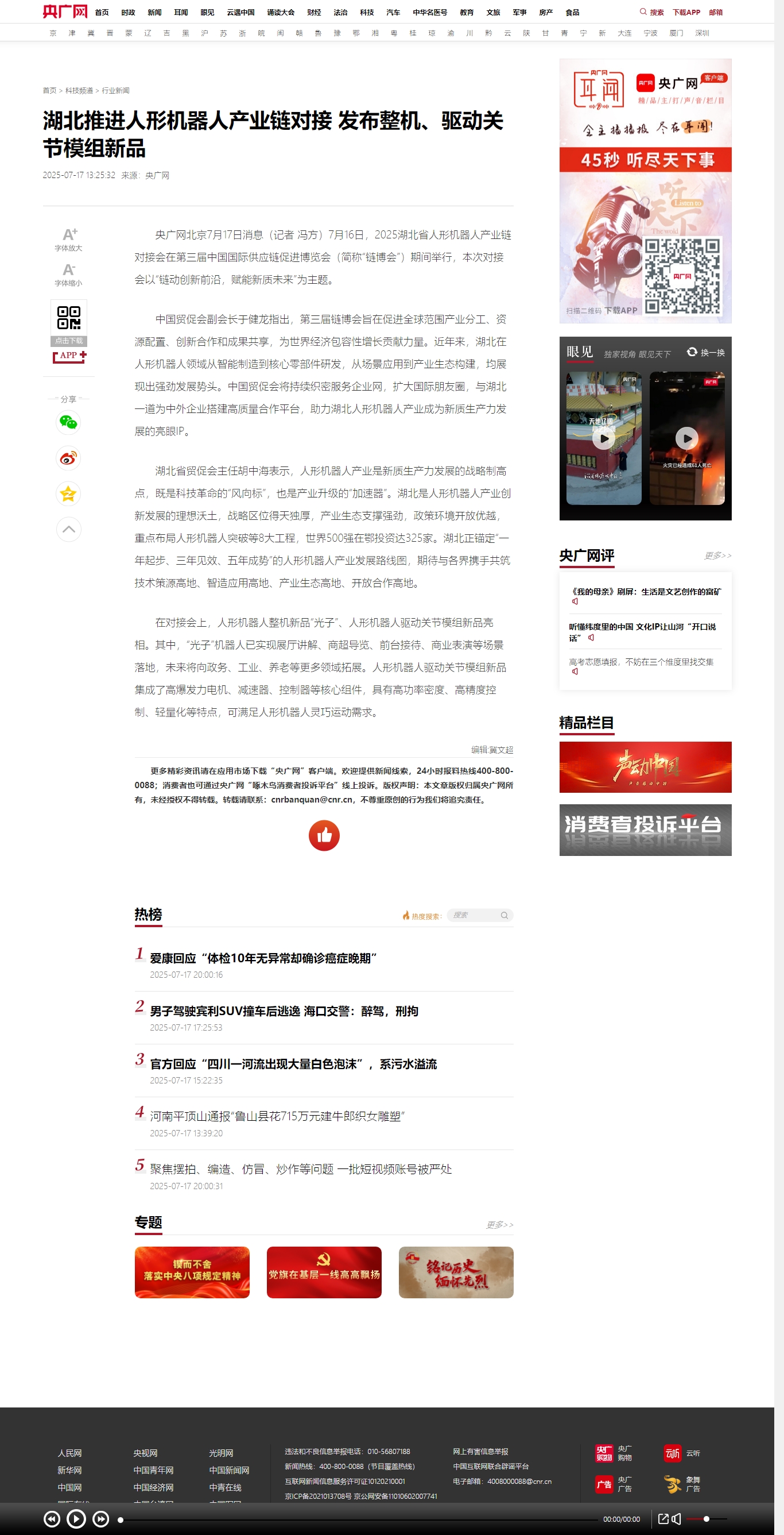 央广网:湖北推进人形机器人产业链对接 发布整机、驱动关节模组新品