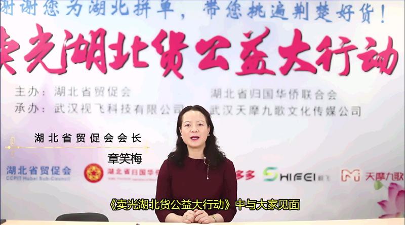章笑梅会长在25日活动的启动仪式上致辞,并分别为明钼菊花茶、仟吉绿豆糕、葆春蜂王浆三款产品进行了代言。章会长表示,在这场突如其来的新冠肺炎疫情中,湖北人民生活和湖北企业都受到了巨大的影响和损失。在党中央高度重视,全国人民驰援下,湖北疫情防控取得了阶段性重要成果,湖北经济社会发展正在逐步被激活,人民生活和企业经营慢慢回到正轨。省贸促会作为服务政企、代言工商的公共服务机构,有责任有义务帮助湖北企业恢复正常经营,为此,我们组织了本次公益直播带货活动,为振兴湖北经济“重启快进”添砖加瓦。同时,特别感谢全国网友搭一把手、尽一片心,支持了湖北尽快恢复社会经济秩序。