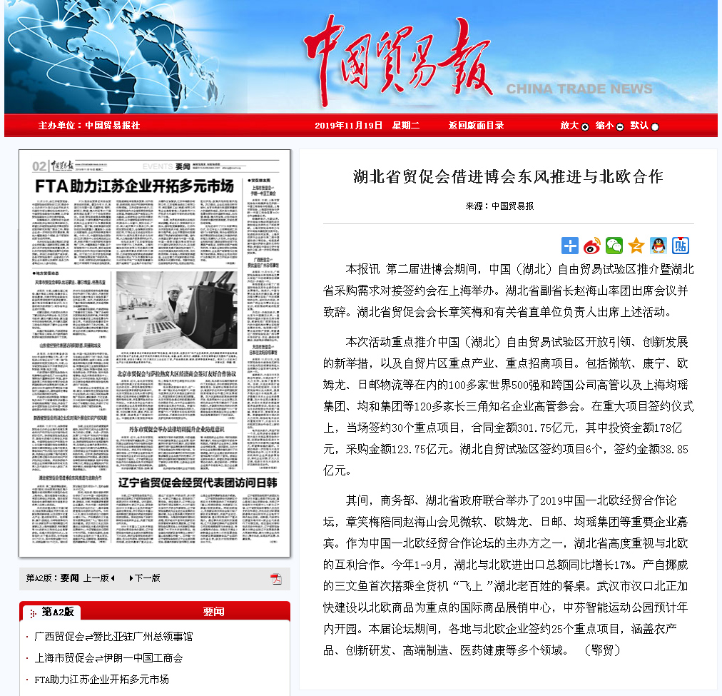 中国贸易报:湖北省贸促会借进博会东风推进与北欧合作