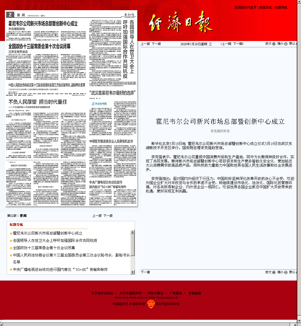 经济日报:霍尼韦尔公司新兴市场总部暨创新中心成立