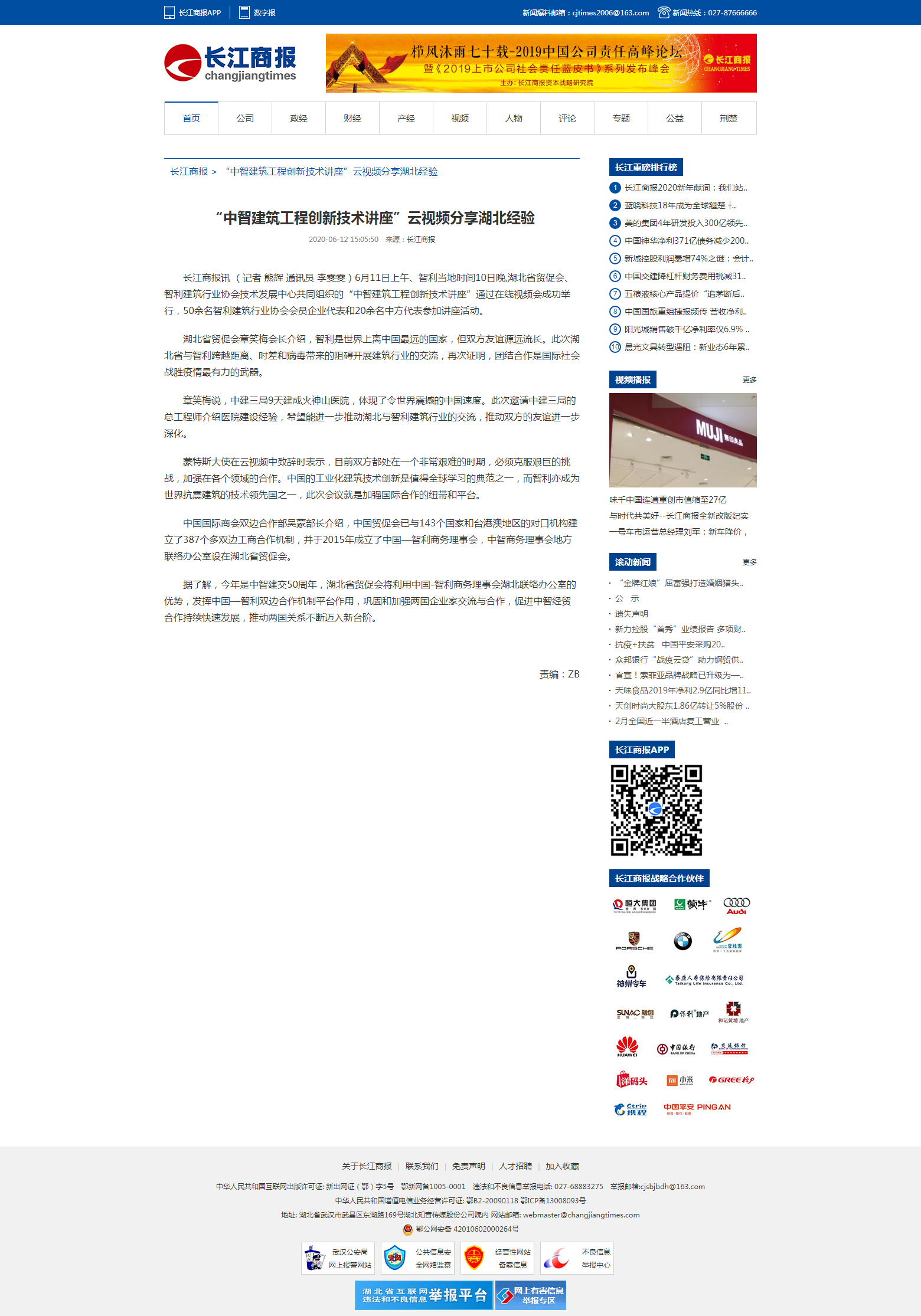 长江商报:“中智建筑工程创新技术讲座”云视频分享湖北经验