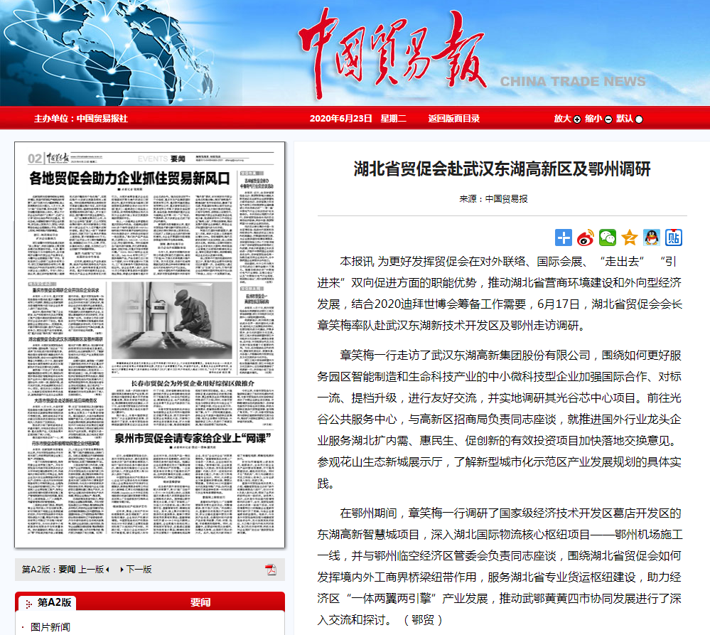 中国贸易报:湖北省贸促会赴武汉东湖高新区及鄂州调研