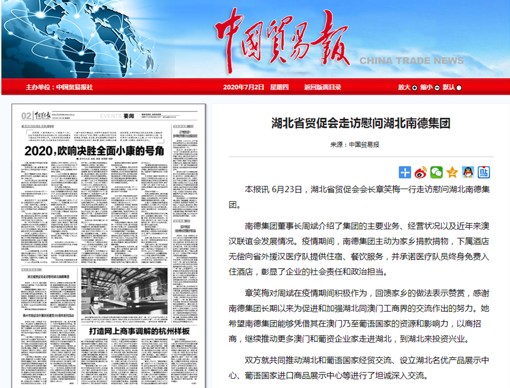 中国贸易报:湖北省贸促会走访慰问湖北南德集团