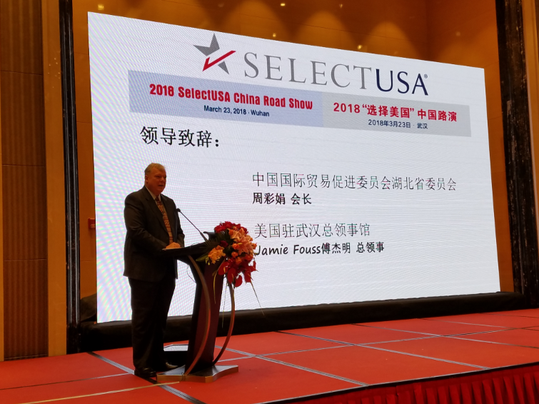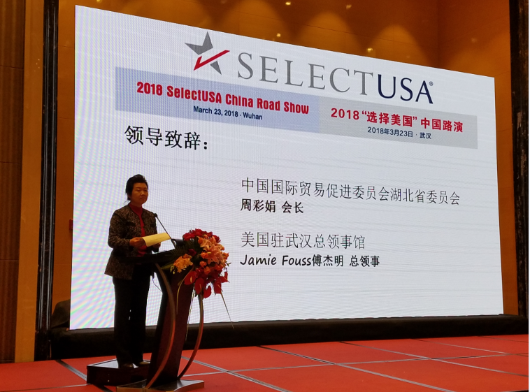 2018“选择美国”中国路演在汉成功举办,周彩娟会长出席并致辞