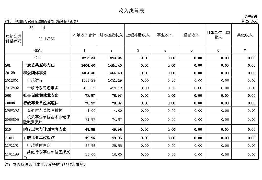 (1)行政单位医疗(项):反映财政部门集中安排的我会公费医疗经费。