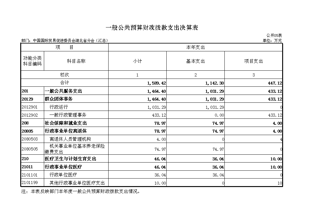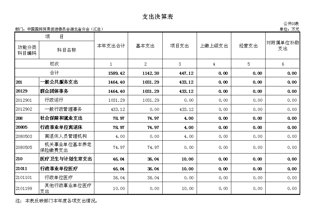 (七)项目支出:指湖北省贸促会在基本支出之外为完成特定行政任务和事业发展目标所发生的支出。