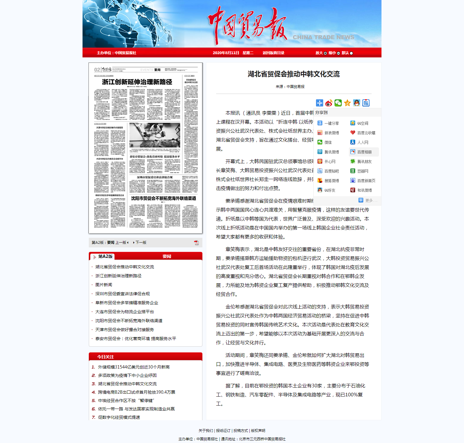 中国贸易报:湖北省贸促会推动中韩文化交流