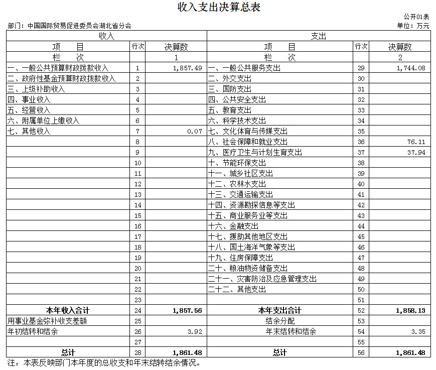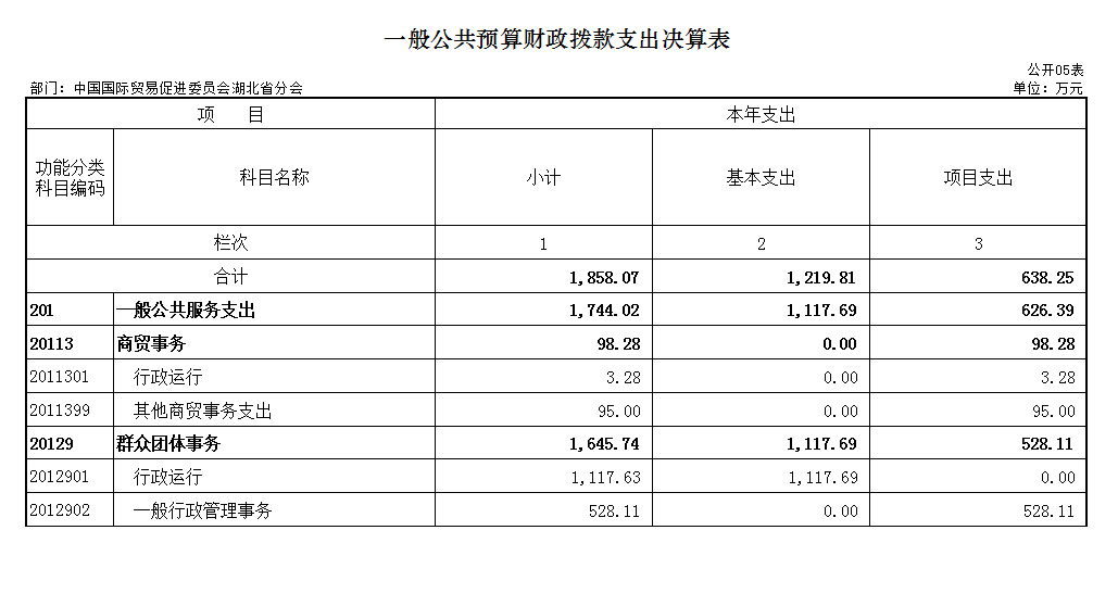 湖北省贸促会2019年部门决算公开