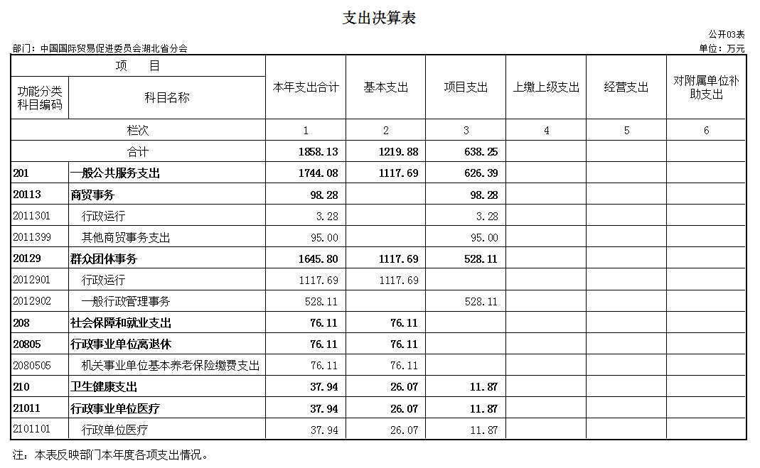 (七)项目支出:指湖北省贸促会在基本支出之外为完成特定行政任务和事业发展目标所发生的支出。
