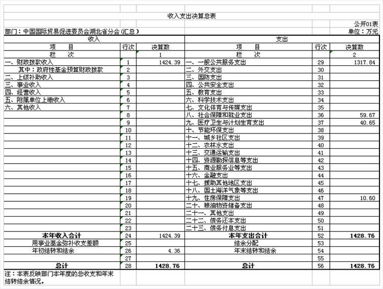 2017年财政拨款收入决算总计1428.76万元,其中:一般公共预算财政拨款1424.39万元,年初财政拨款结转和结余4.36万元。