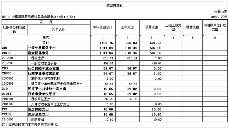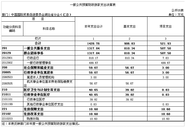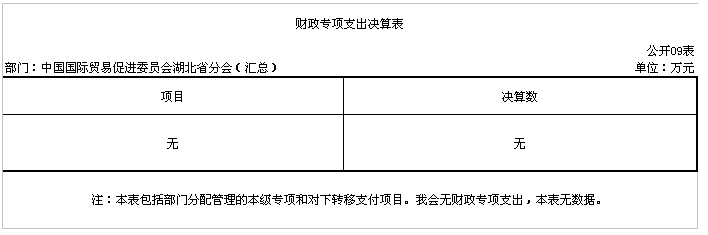 (七)项目支出:指湖北省贸促会在基本支出之外为完成特定行政任务和事业发展目标所发生的支出。