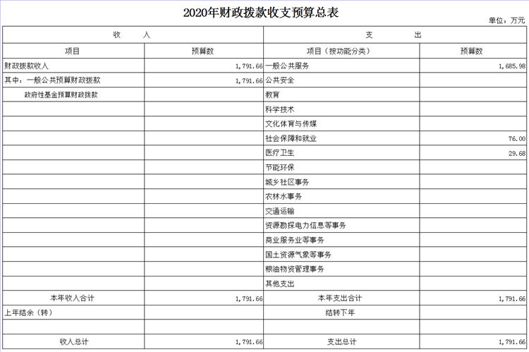 2020年财政拨款收入预算数1791.66万元。