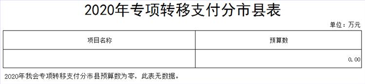 2020年我会专项转移支付分市县预算数为零。