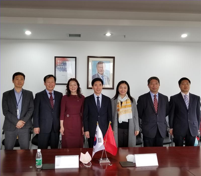 姜承锡总领事对章会长的到来表示热烈欢迎,感谢章会长及省贸促会对韩国驻汉总领馆防疫复工的关心和支持。今年正值中韩建交28周年、韩国驻汉总领馆开馆10周年,希望双方继续发挥桥梁作用,保持常态化沟通渠道,省贸促会及省直各部门对韩资企业给予一如既往的帮助与支持,吸引更多韩企进驻湖北。