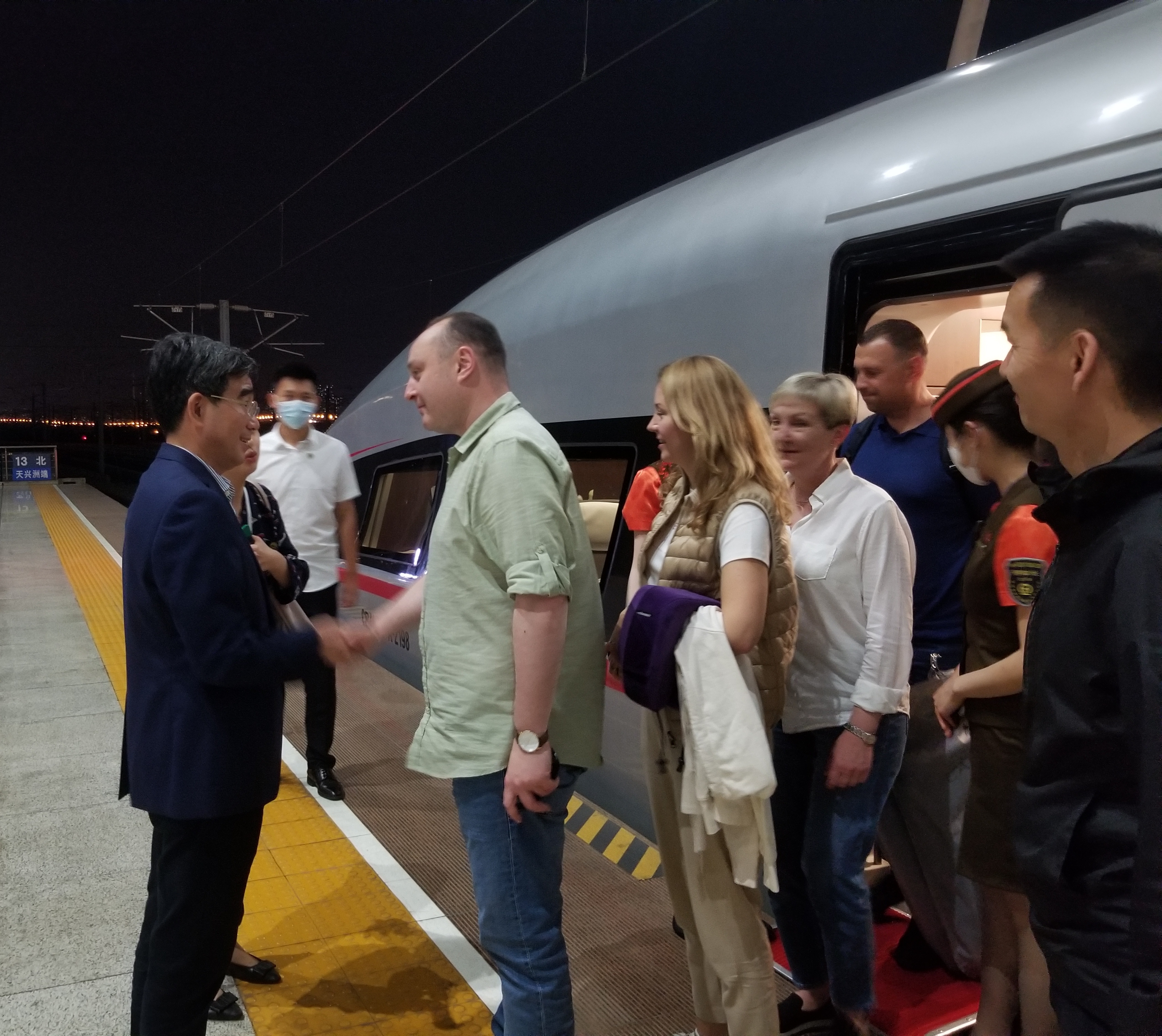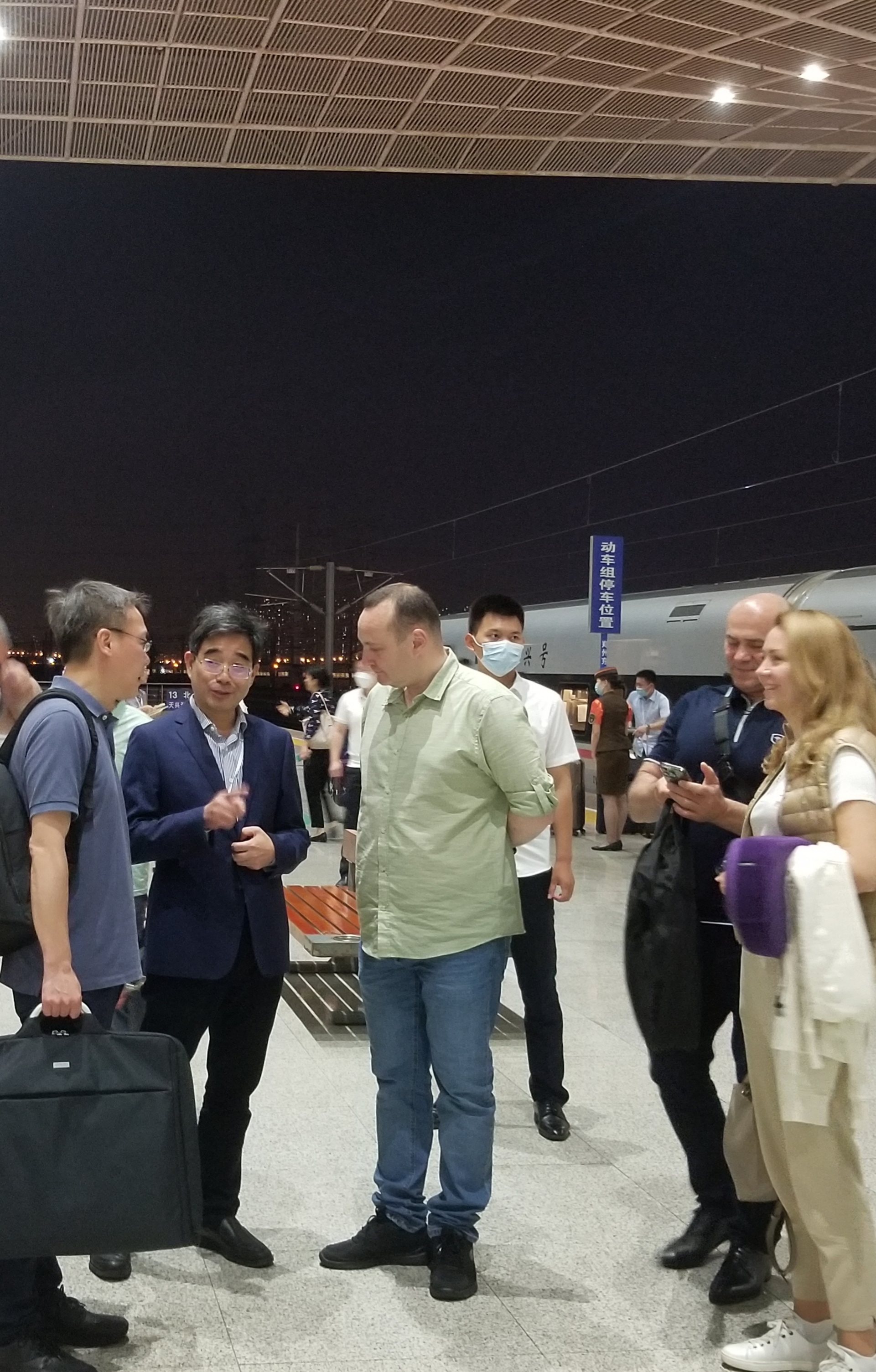 5月29日晚,胡中海主任亲自前往武汉站,欢迎来汉出席宣介会的摩尔多瓦代表团,并与“摩尔多瓦社会主义者党和共产党人党”联盟议会党团主席、副议长弗拉德·巴特雷恩察(Vlad Batrincea)一行友好交流。