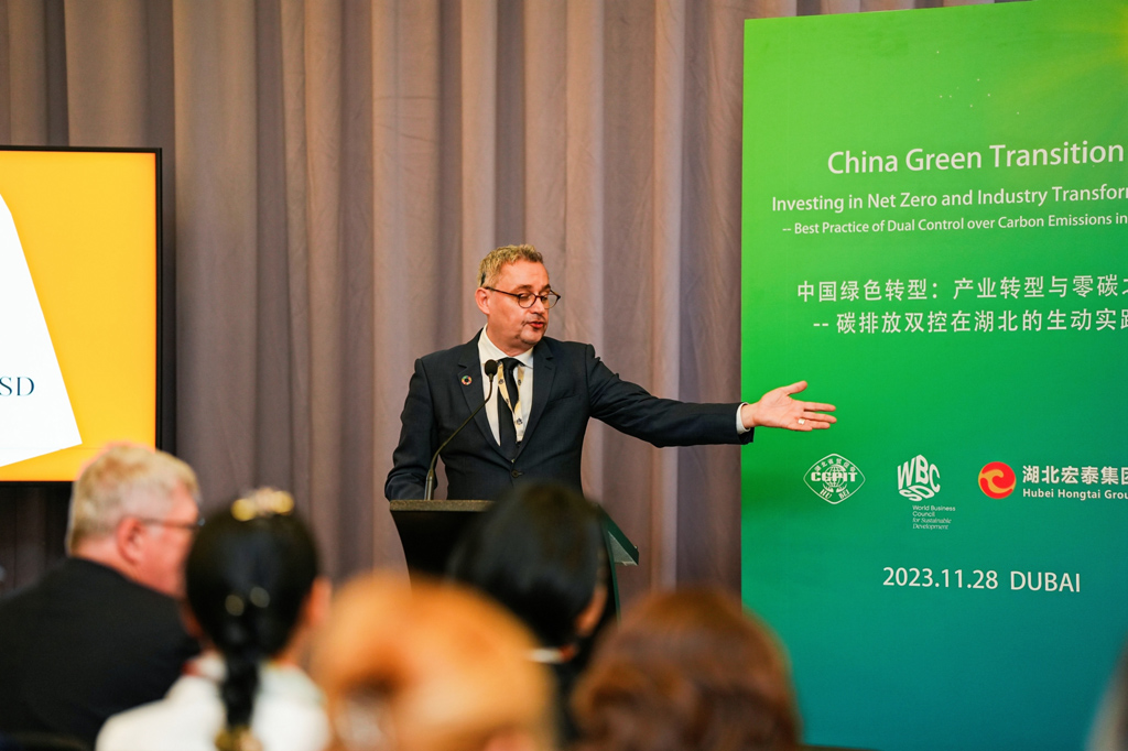 当地时间11月28日,可持续发展国际合作专题交流对接会在迪拜成功召开,会议主题为“中国绿色转型:产业转型与零碳之路—碳排放双控在湖北的生动实践”。陈平副省长、世界可持续发展工商理事会会长兼首席执行官贝德凯出席活动并致辞,湖北及外国企业代表等百余人参加。