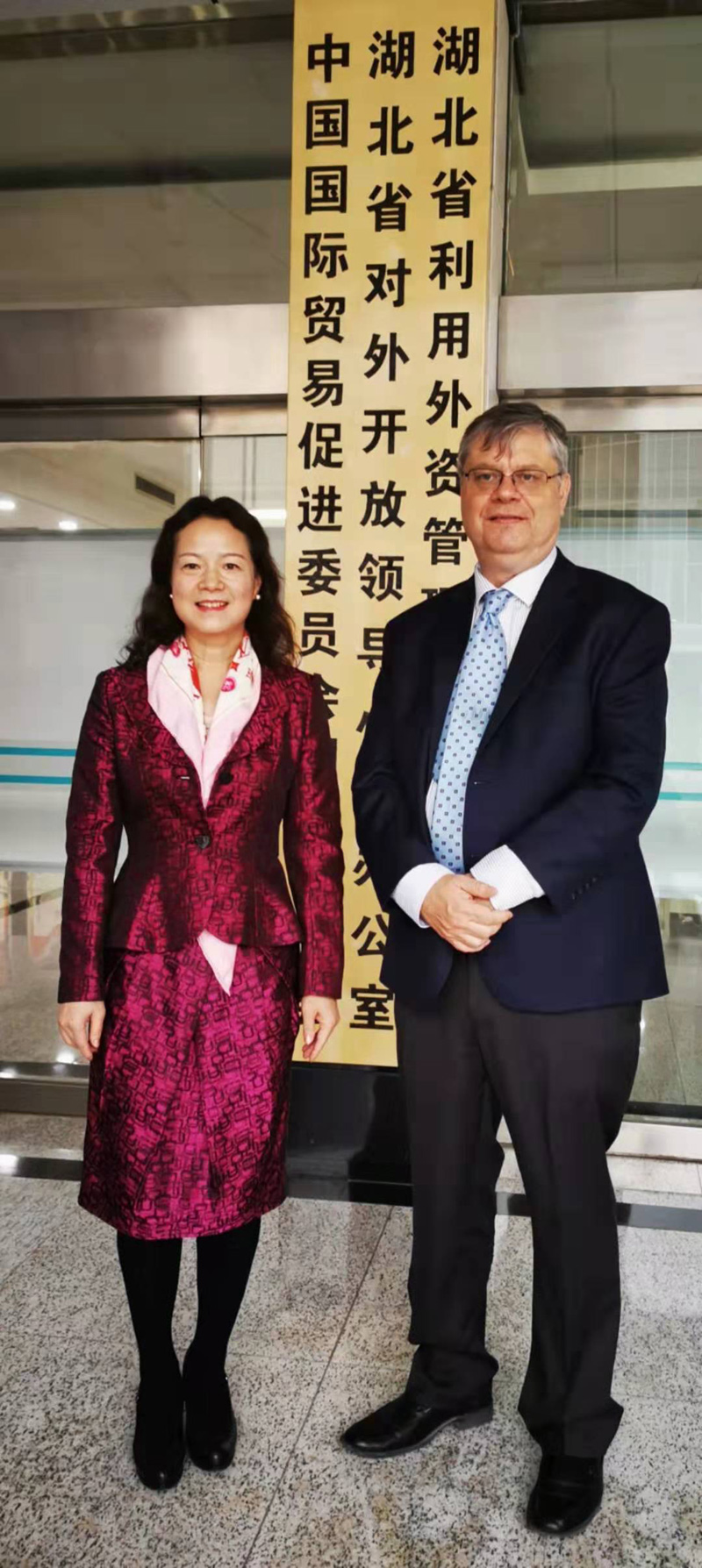 双方就提升湖北省国际知名度、改善营商环境、打造知名国际会展、涉外法律服务等议题进行了深入交流。外联部、法律部、展览部负责人陪同参加会见。