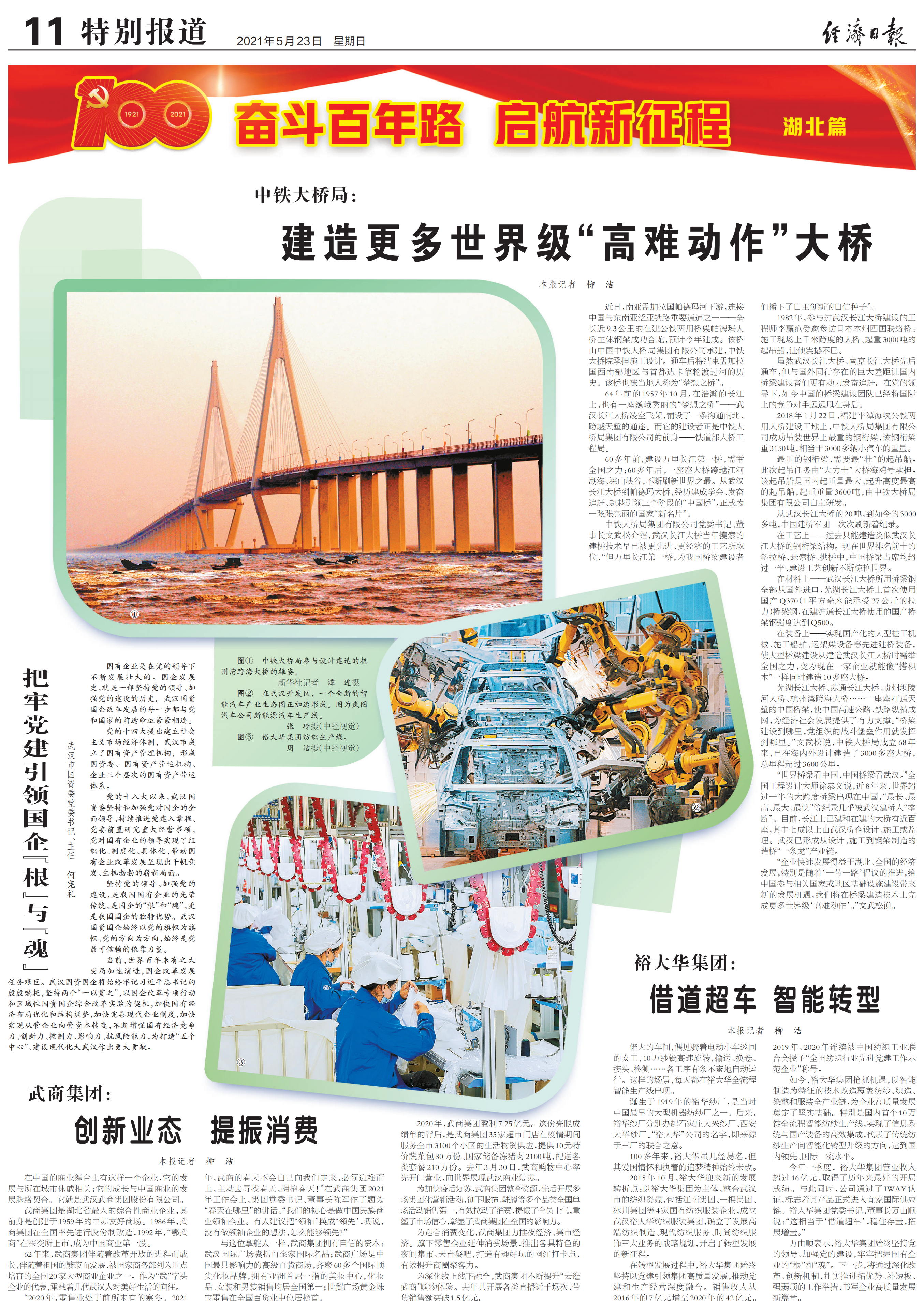 “企业快速发展得益于湖北、全国的经济发展,特别是随着‘一带一路’倡议的推进,给中国参与相关国家或地区基础设施建设带来新的发展机遇,我们将在桥梁建造技术上完成更多世界级‘高难动作’。”文武松说。