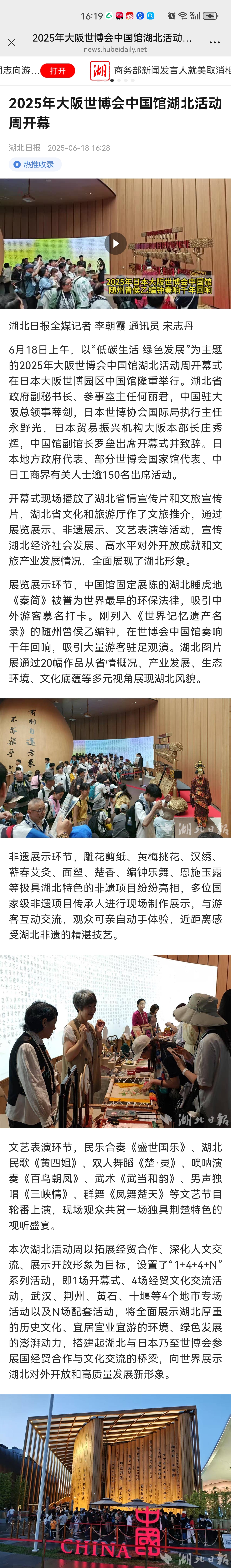 湖北日报:2025年大阪世博会中国馆湖北活动周开幕