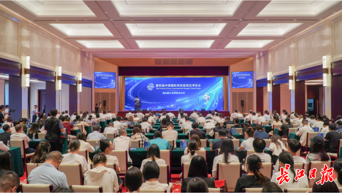 第四届中国国际供应链促进博览会(简称“链博会”)湖北推介会暨签约仪式现场。 记者夏俊俊 摄